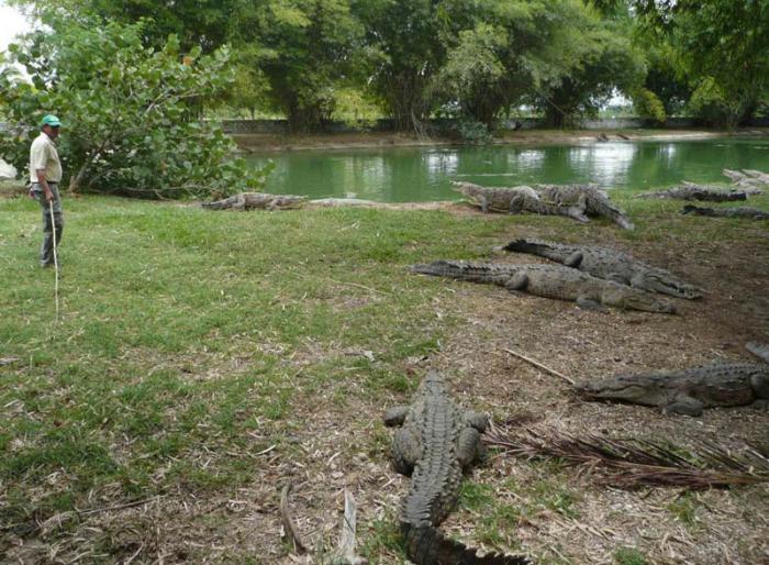 Parece un pedazo virgen del vasto Delta del Cauto, arrancado de allá y traído aquí; porque tanto cocodrilo junto de la especie Acutus ya no es posible verlo en su medio originario, a no ser aquella zona en que sale al mar el río más largo de Cuba, asiento de la mayor población de este tipo de reptil en todo el orbe.