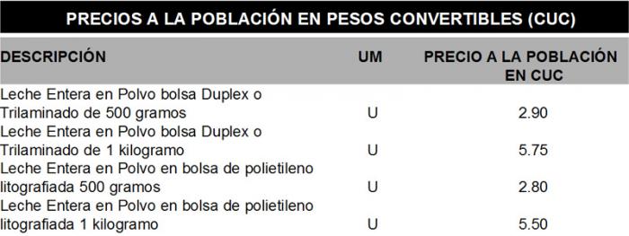 En el año 2014 debido al incremento de los precios de la leche en polvo en el mercado mundial, fue necesario aumentar los precios de este producto en las tiendas recaudadoras de divisas.