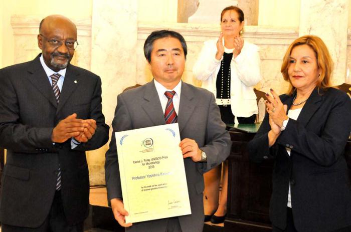 El científico japonés Yoshihiro Kawaoka fue reconocido este lunes con el Premio Unesco Carlos J. Finlay para Microbiología.