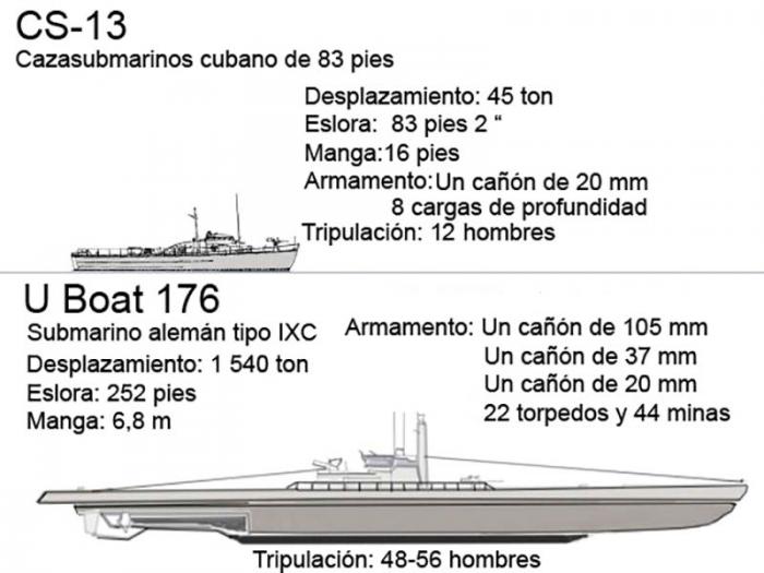 Era el 15 de mayo de 1943 y el cazasubmarinos CS-13 se despegó del muelle en Isabela de Sagua y buscó las aguas del canal Viejo de Bahamas. Era una lancha de 83 pies y dos pulgadas de eslora y casco de madera, con motor diésel de 1 200 caballos que le proporcionaba una velocidad máxima de 18 nudos. Como armamento, un cañón automático de 20 milímetros, ocho cargas de profundidad de 115 kilogramos cada una y una corajuda tripulación.