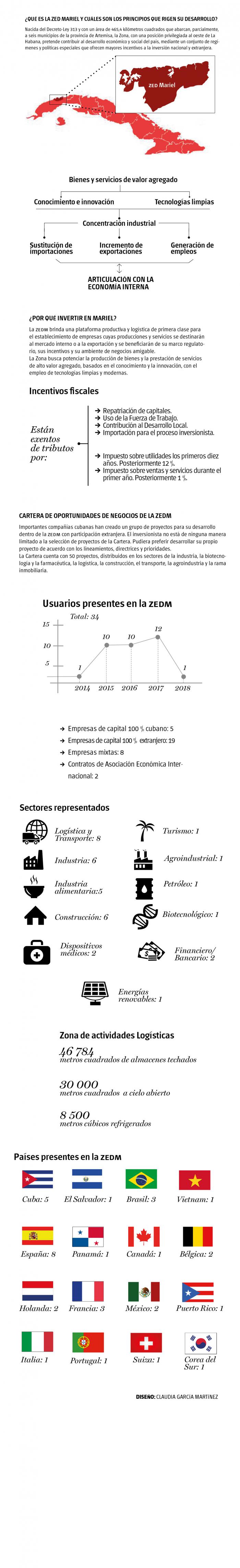 De los usuarios aprobados, actualmente existen diez proyectos en operación, relacionados con los sectores de la industria, biotecnología y farmacéutica, logística, construcción, transporte, agroindustria y la rama inmobiliaria. De igual modo, la ZED Mariel ha logrado captar un monto total de inversión ascendente a 1 191,4 millones de dólares y se han generado 4 888 empleos directos.