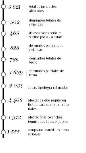 Ante el imperativo de enfrentar con rapidez el problema de las viviendas afectadas, fue grato conocer que hasta este jueves estaban iniciadas 261, más la adaptación de locales por diversas fuerzas constructoras, con un buen ritmo de ejecución.