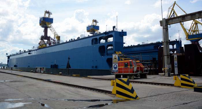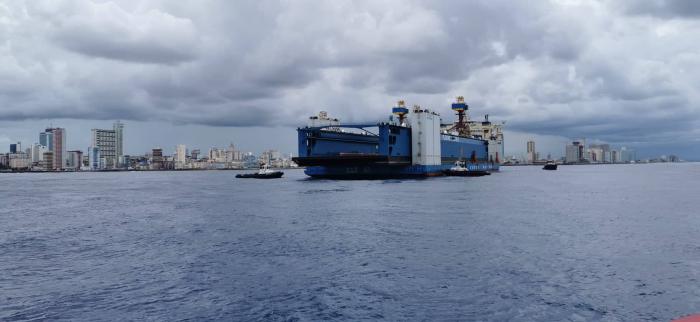 El pasado 27 de octubre el supercarguero sumergible, que transportaba al dique, llegó a su posición de maniobra en el litoral habanero para comenzar, in situ, el proceso de flotación y entrada a la bahía capitalina de la nueva adquisición hasta llegar a los astilleros.