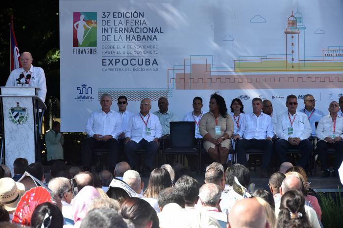 El presidente de la República de Cuba, Miguel Díaz-Canel Bermúdez asistió esta mañana a la inauguración de la XXXVII Feria Internacional de La Habana en la que están representados más de 55 países y que tendrá lugar del 4 al 8 de noviembre en el recinto ferial de EXPOCUBA.