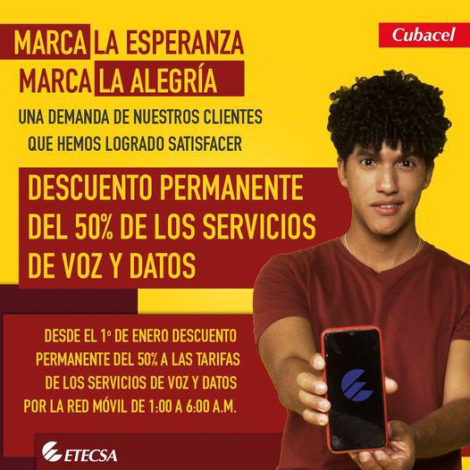 Anuncia, además, el descuento permanente del 50% de los servicios de voz y datos por la red móvil desde el 1ro de enero de 2021, de 1:00 a 6:00 a. m.