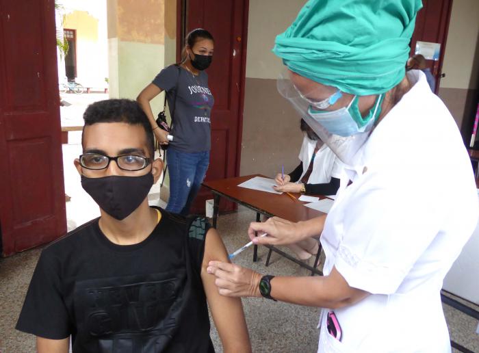 Con la vacunación de los estudiantes de 12 grado, del tercer año de la enseñanza técnico-profesional, y de tercer y cuarto años de formación pedagógica, echó a andar en Cuba el proceso de inmunización al primer grupo de personas en edades pediátricas.
