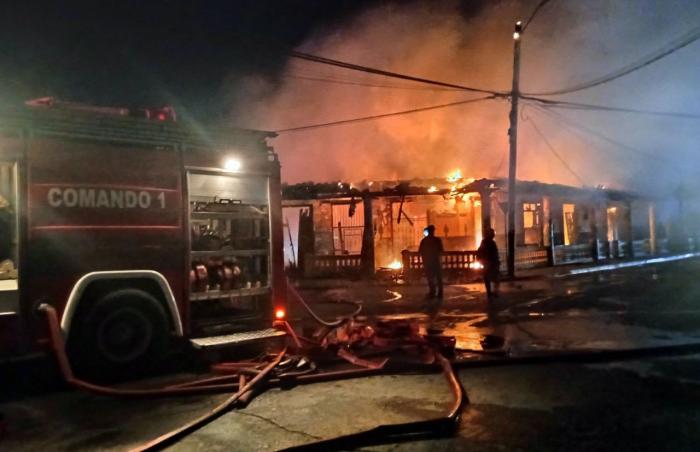 Cerca de las cuatro de la mañana fue extinguido el incendio, responsable de perjuicios de consideración a dos moradas contiguas, una de ellas una tienda particular.
