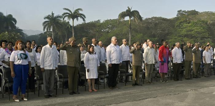 Luego de entonar las notas encendidas del Himno Nacional, canto al combate constante, tan cercano al llamado de Vilma al empoderamiento y la participación plena de las cubanas, fueron depositadas por jóvenes mujeres sendas ofrendas florales, en nombre del pueblo de Cuba, a la heroína y a los héroes y mártires del Segundo Frente Oriental.