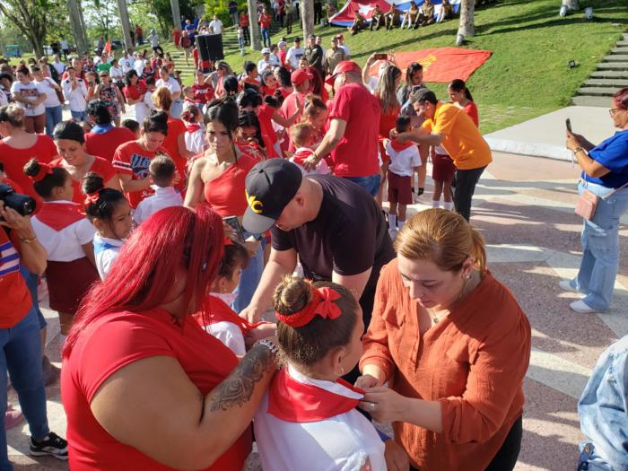 Allí, en el lugar que guarda los restos inmortales del Guerrillero Heroico y del Destacamento de Refuerzo, tuvo lugar el cambio de atributos pioneriles, que constituyó un momento de grandes emociones para padres y alumnos, que una vez más juraron Ser como el Che, una consigna cargada de compromiso en medio de las complejidades que hoy vive la Patria.