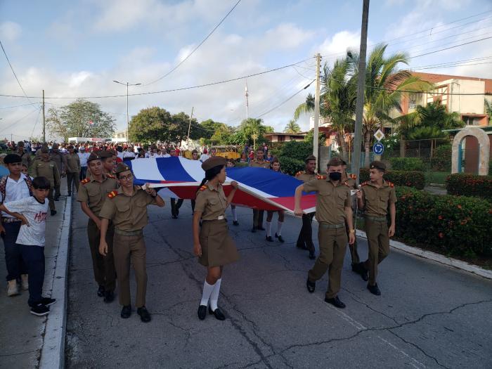 Bien temprano en la mañana partió del parque Antonio Maceo, a quien también se le rindió tributo en ocasión de conmemorarse los 180 años de su nacimiento, una marcha compacta de miles de jóvenes y trabajadores santaclareños, que encabezados por Susely Morfa González y Milaxys Janet Sánchez Armas, máximas figuras del Partido y el Gobierno en el territorio, respectivamente, recorrieron el trayecto que conduce hasta la Plaza Ernesto Che Guevara.