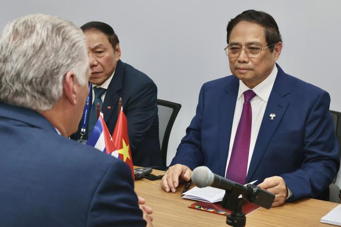 En conversación con el premier vietnamita, el Jefe de Estado de la isla caribeña calificó de especial el momento que viven las relaciones entre ambos países. Es un placer verle aquí en Brasil, dijo, cuando Vietnam se incorpora como país socio de los Brics, acontecimiento que sentimos como nuestro por la histórica relación de amistad que nos une.