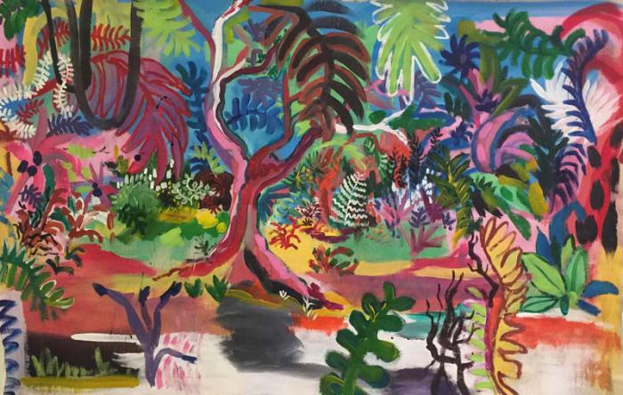 Giorgia Rojas se animó a recrear simbólicamente la memoria de un personaje excepcional. En ningún momento se deja seducir por las vivencias narrativas; opta más bien por imaginar lo que los ojos del cimarrón y mambí fijaron durante sus andanzas por el monte. Y luego, en una serie de pinturas sucesivas consagró su propia mirada a ese monte, a la naturaleza, a los prodigios de la cercanía con los efluvios vitales del entorno.