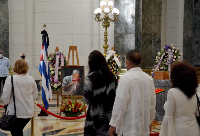 Acompañaban las cenizas del reconocido intelectual, nuestro inolvidable Historiador, el novio de la capital, ofrendas florales enviadas por el Primer Secretario del Comité Central del Partido, el General de Ejército Raúl Castro Ruz; por el Presidente de la República, Miguel Díaz-Canel Bermúdez; por la Asamblea Nacional del Poder Popular, y por la Oficina del Historiador de La Habana.