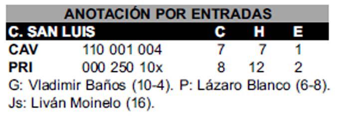 Ya con la ventaja en la pizarra, del cierre monticular por los pinareños se encargó Yaifredo Domínguez, efectivo entre séptimo y octavo, pero muy descontrolado en el noveno, cuando los Tigres marcaron cuatro y amenazaron con darle vuelta a la historia, pero Liván Moinelo selló el éxito con ponches a José Adolis García y Ariel Borrero.
