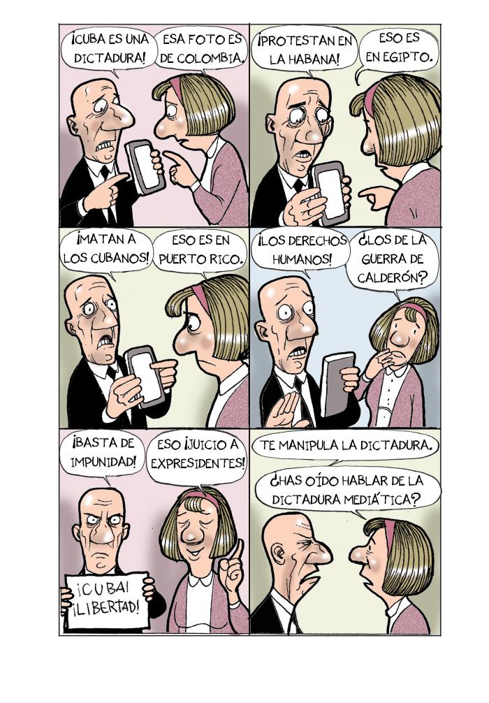 También desde InfodemiaMx, donde el investigador español Julián Macías Tovar fue entrevistado a raíz de su investigación en la que demuestra cómo se orquestó la campaña mediática #SOSCuba contra Cuba, se mostraron videos y fotografías falsas que se exhibieron en redes sociales afirmando que se trataba de las manifestaciones en la Isla.