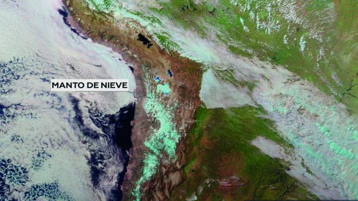 El satélite Meteor-M, de la corporación estatal rusa Roscosmos, publicó una imagen en la que se ve el desierto chileno de Atacama, el más seco del mundo, cubierto de nieve. La fotografía fue capturada este viernes, luego de que se presentara la primera nevada sobre el territorio en más de una década. «En Moscú, lluvia, en el desierto, nieve», escribió la organización, junto con la publicación de la imagen. (RT)