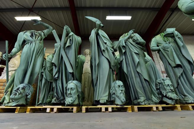 En cuanto a la aguja, estaba decorada con gallo de cobre, que se encontró entre los escombros. En su interior se encontraban tres reliquias que no pudieron salvarse en el incendio: la que se considera una de las 70 espinas de la corona de Cristo y otras dos reliquias de San Denis y Santa Genoveva.