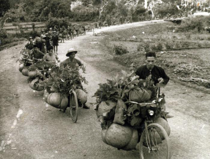 Cientos de bicicletas fueron modificadas y reforzadas para que pudieran cargar más de 150 kilos; convoyes de zampanes, caballos y bueyes, también fueron utilizados en esta tarea. Decenas de miles de toneladas de suministros fueron colocados y resguardados en las alturas que dominaban Dien Bien Phu.