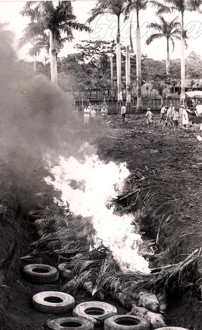 Aunque en la nota publicada el 23 de junio de 1971 se daba a conocer la aparición de un agresivo brote de fiebre porcina africana en la provincia de La Habana, ya desde finales del mes de mayo habían aparecido los primeros casos de cerdos enfermos en el municipio de Boyeros.