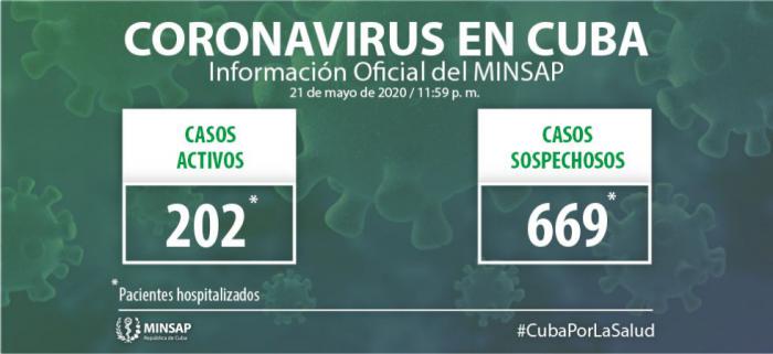 Al cierre del día de ayer, 21 de mayo, se encuentran ingresados en hospitales para vigilancia clínica epidemiológica 669 pacientes. Otras 1 mil 790 personas se vigilan en sus hogares, desde la Atención Primaria de Salud.