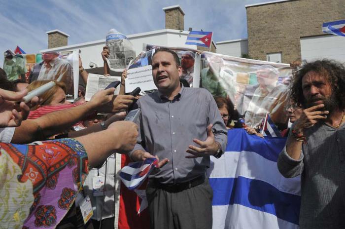 Decenas de representantes cubanos rechazaron sin violencia las ofensas contra nuestro país de algunos contrarrevolucionarios que se personaron en el lugar.