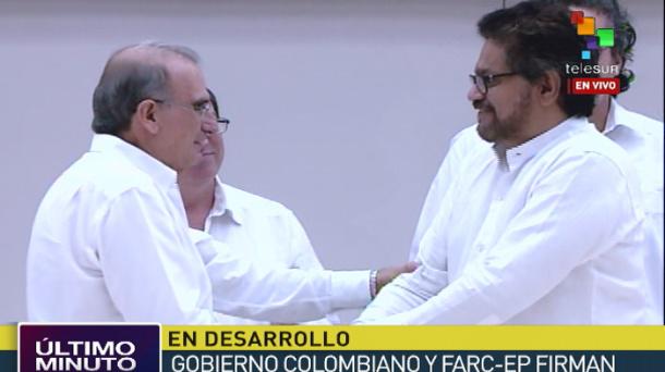 Delegados de la insurgencia, Gobierno colombiano, víctimas y acompañantes internacionales asistieron en La Habana a la firma del histórico acuerdo sobre el punto cinco de la agenda: las víctimas del conflicto armado colombiano. En la mesa de diálogos de La Habana se han alcanzado hasta el momento cinco acuerdos definitivos:desarrollo rural integral, en el de participación política de la insurgencia y en el de erradicación de cultivos ilícitos, cese del conflicto y víctimas además del histórico anuncio del marco para el acuerdo de Justicia Transicional. El pasado 23 de septiembre ambas delegaciones firmaron un acuerdo parcial para el fin del conflicto colombiano, entre los puntos preacordados, se habló sobre la Justicia Transicional de Paz para cumplir un compromiso con las partes involucradas. Además, establecer como prioridad una respuesta legal para las víctimas del conflicto armado.