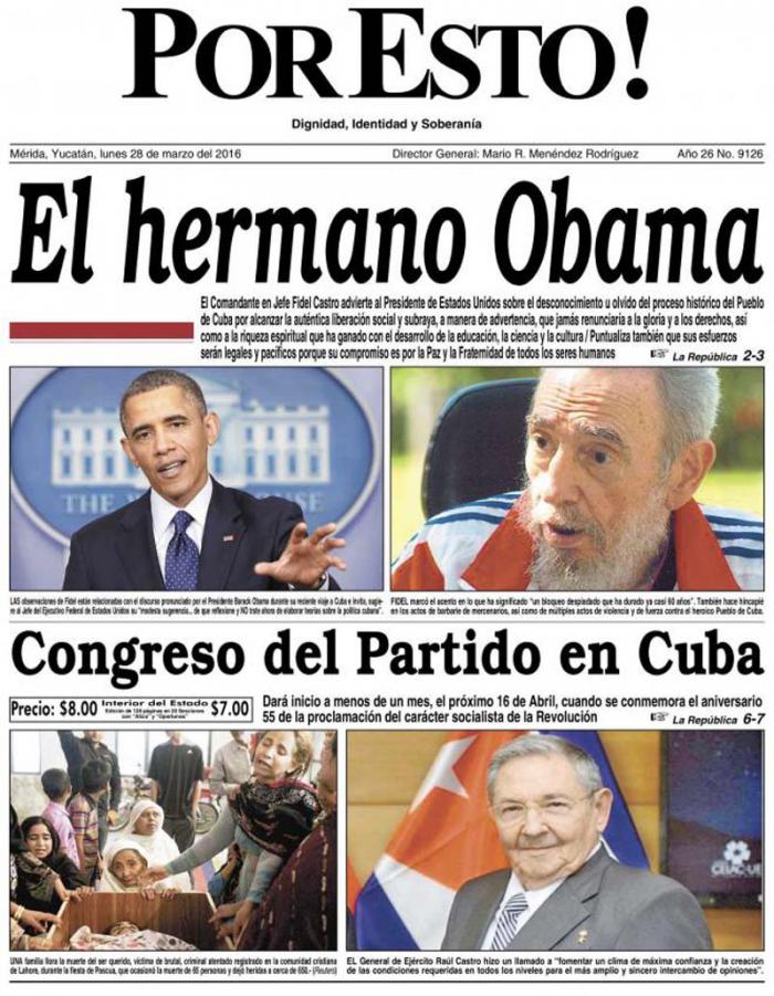 El periódico La Jornada, de México, también hizo alusión a las ideas que el líder cubano dedicó a analizar el discurso del presidente Obama durante su visita a Cuba.
