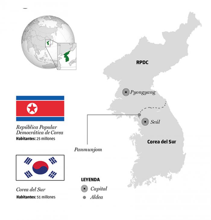 Panmunjom se ubica en la llamada «zona desmilitarizada», un área que abarca un tramo de cuatro kilómetros de ancho y 238 kilómetros de largo en la polémica entre las dos Coreas y que, pese a su nombre, es uno de los territorios más vigilados y armados del mundo.