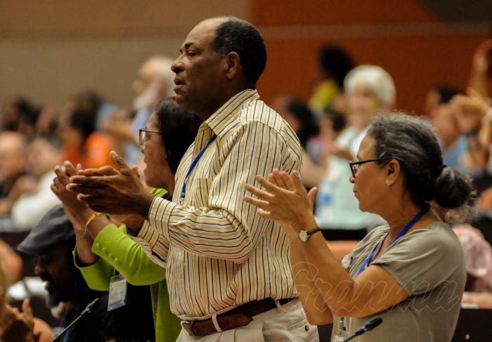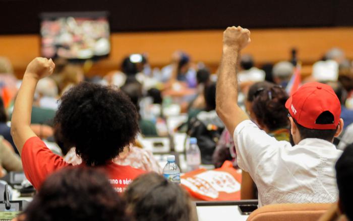 Para finalizar, solicito a todas y todos, ponernos de pie en este plenario para enviar desde La Habana, nuestro abrazo solidario, a los pueblos de Haití y Chile que se mantienen en las calles, movilizados y en rebeldía para derrotar de una vez por todas al modelo neoliberal impuesto y que fue exportado a todo el mundo.