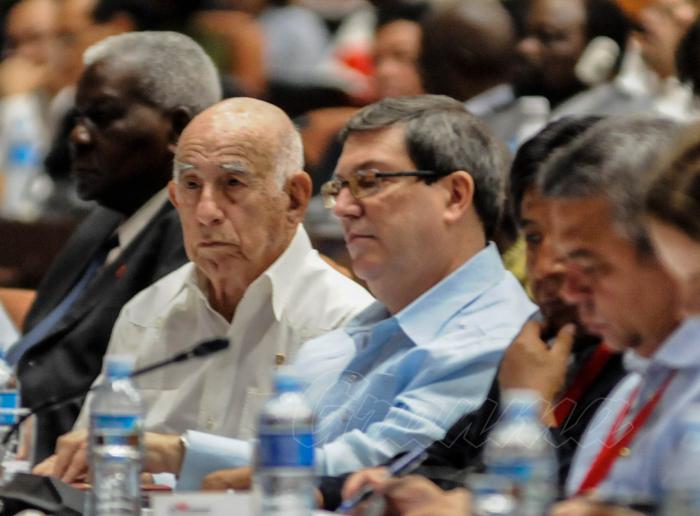 Asisten a la apertura del Encuentro Antimperialista de Solidaridad por la Democracia y contra el Neoliberalismo, José Ramón Machado Ventura, Segundo Secretario del Comité Central del Partido Comunista de Cuba; Esteban Lazo, presidente de la Asamblea Nacional del Poder Popular y del Consejo de Estado; Bruno Rodríguez, titular del Minrex, Ulises Guilarte, secretario general de la CTC; entre otros dirigentes del Partido y del Gobierno.