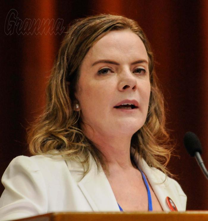 La presidenta del PT agradeció la iniciativa de Cuba y manifestó que «Esta lucha apoyada nos da fuerte para seguir adelante y nos da una perspectiva del apoyo tambien de América Latina».