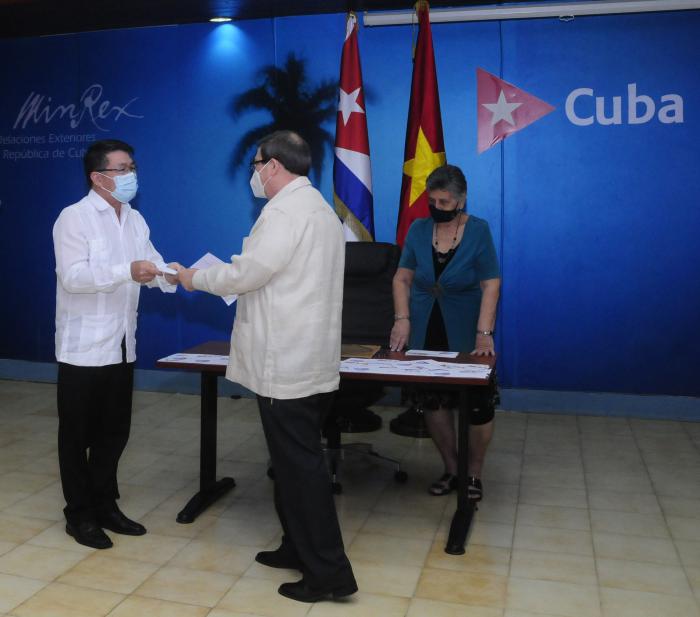 El ministro de Relaciones Exteriores, Bruno Rodríguez Parrilla, quien presidió la actividad realizada en la sede de la Cancillería cubana, destacó en su cuenta en Twitter que la ceremonia resalta «el carácter especial de los nexos bilaterales, así como la hermandad y la solidaridad recíproca».