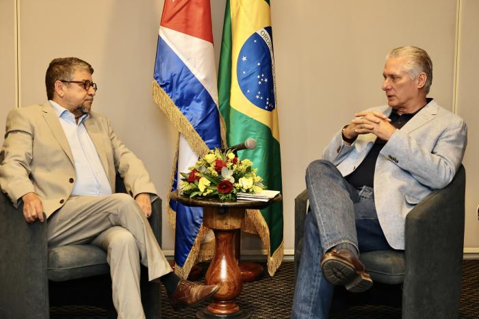 Díaz-Canel, quien ha llegado a la ciudad brasileña para tomar parte en la XVII Cumbre de los Brics, comentó estar al alto de la visita reciente de un equipo técnico del país caribeño al gigante sudamericano; e hizo alusión a los ámbitos biofarmacéutico y biotecnológico como valiosas oportunidades de intercambios entre ambas naciones.