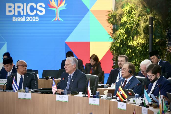 RÍO DE JANEIRO.-«Unámonos para impulsar el nuevo orden internacional que deseamos y merecemos, uno en el que se garantice la paz, se proporcione el bien común y la prosperidad de los pueblos, se realice el derecho al desarrollo por todos los países y esté en armonía con la naturaleza». Así convocó el Presidente de la República de Cuba, Miguel Díaz-Canel Bermúdez, durante la Cumbre de los BRICS, cuyo segundo día tuvo lugar este 7 de julio.
