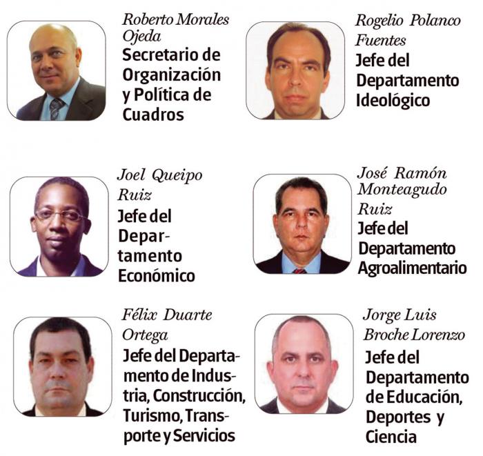 Integrado hoy por seis compañeros con una amplia trayectoria en las filas de la organización, este es el organismo elegido por el Pleno del Comité Central que, subordinado al Buró Político, lo auxilia en la dirección del trabajo diario del Partido.
