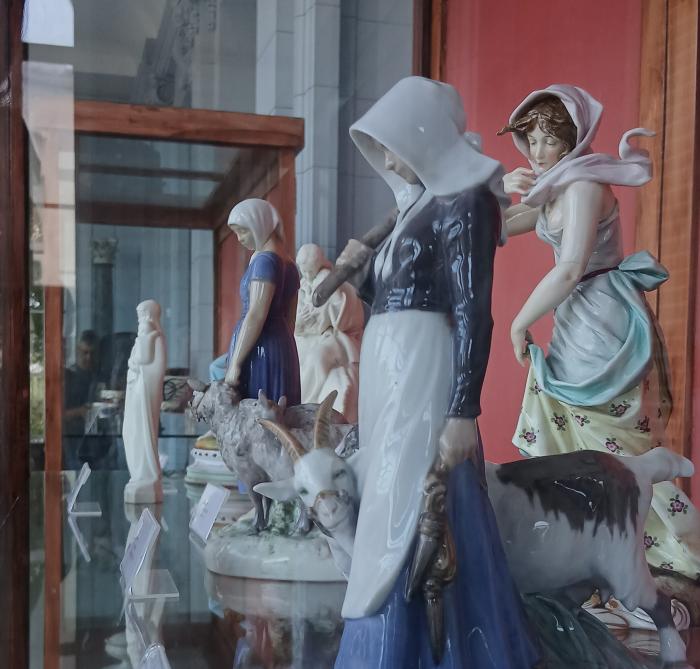 La muestra, que lleva por nombre Nostalgias, refleja la figura de las mujeres tanto en las altas cortes europeas como en las clases sociales más humildes. En ambos casos, se disfruta la exquisitez de los detalles, trabajados en porcelana —y su variante en biscuit blanco o coloreado, y Sèvres—, cerámica, bronce y mármol.
