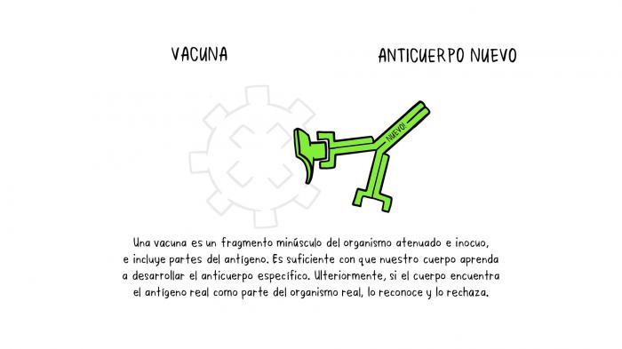 Las vacunas contienen partes atenuadas o inactivadas de un organismo específico (antígeno) que provoca una respuesta inmunitaria en el cuerpo. Las vacunas más recientes contienen las "instrucciones" para producir antígenos, en lugar del antígeno en sí mismo. Independientemente de que la vacuna contenga el antígeno o las instrucciones para que el cuerpo lo produzca, esa versión atenuada no provocará la enfermedad en la persona vacunada, pero inducirá al sistema inmunitario a responder como lo hubiese hecho en su primera reacción ante el patógeno real.