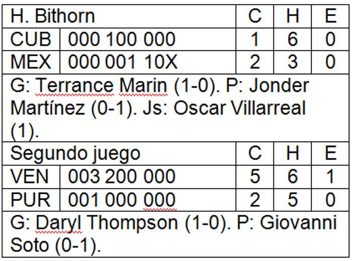 Anthony Vásquez, Terence Martin, Héctor Rodríguez y Oscar Villareal, los serpentineros mexicanos cubrieron toda la ruta sin boletos y un solo pelotazo, o lo que es lo mismo, ellos no regalaron nada, aunque toleraron seis indiscutibles. Sin embargo, el hombre que se llevó toda la gloria fue Walter Ibarra, quien empuñó por Oscar Flores y pegó el jit de oro ante Liván Moinelo.