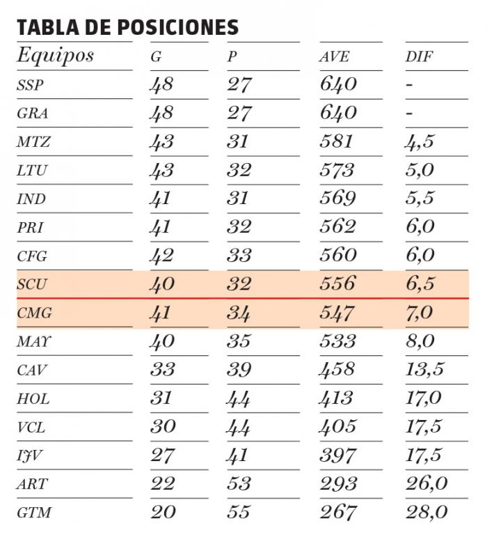 Para sobrevivir, a los de los Tinajones les queda que vueltabajeros y Azules dividan, llegando ambos a 42 triunfos, y que Santiago de Cuba ceda en dos con la Isla de la Juventud, porque, en ese caso, igualarían con 41 sonrisas Toros y orientales, pero los primeros sí les ganaron su cotejo en el calendario regular.