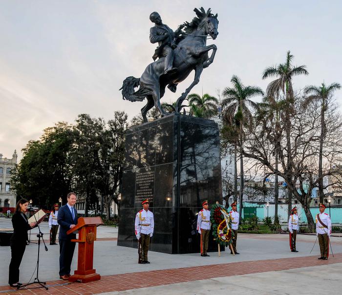Una estatua ecuestre del Apóstol Nacional de Cuba, José Martí, fue develada en la mañana de este 28 de enero en el parque 13 de marzo de La Habana Vieja.