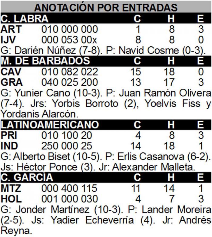 Con semejante lastre resulta muy complicado ganar. De demostrarlo se encargaron los discípulos del mentor José Luis Rodríguez Pantoja, quienes con solo ocho imparables fabricaron la misma cantidad de carreras. De todos ellos el más importante fue el triple del refuerzo cienfueguero Yusniel Ibáñez con tres compañeros en circulación, conexión virtualmente decisiva.