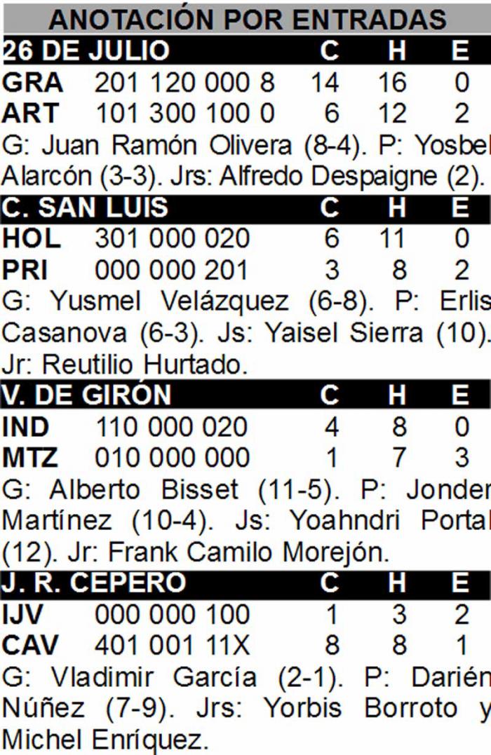 Este lunes el panorama tampoco fue muy alentador, con seis anotaciones que subieron a la pizarra y otra nueva explosión del abridor zurdo Dariel Góngora, uno de los refuerzos solicitado por Carlos Martí, quien además no pudo contar con buena labor del relevista César García (cuatro limpias permitidas en igual cantidad de capítulos).