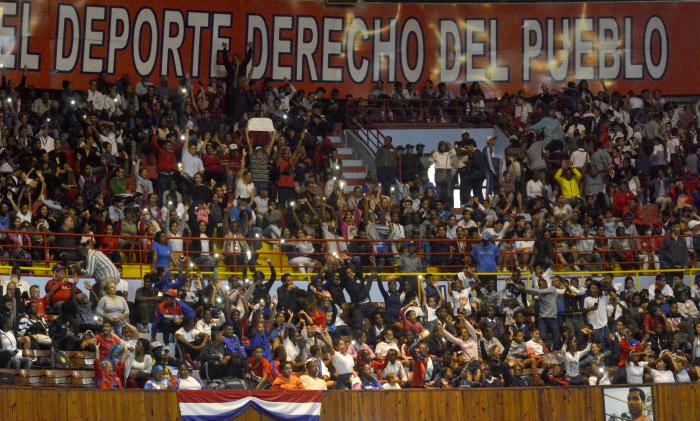 Finalizado el recorrido, los jugadores, el cuerpo técnico y demás miembros de la delegación del Team Asere fueron acogidos en el Coliseo de la Ciudad Deportiva, ante los vítores de miles de jóvenes de las escuelas deportivas y de las universidades de la capital.