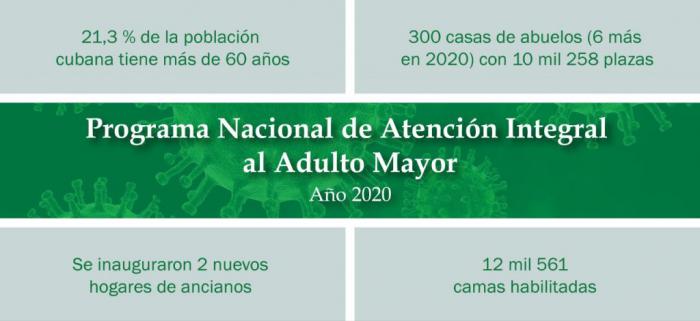 Destaca el sitio del Minsap, al referirse a la atención al adulto mayor en 2020, que, pese a la compleja situación generada por la incidencia de la COVID–19 y las tensiones económicas agravadas por el bloqueo, se inauguraron dos hogares de ancianos, uno en Matanzas y otro en Pinar del Río, para un total de 157 en la nación, con unas 12 561 camas.