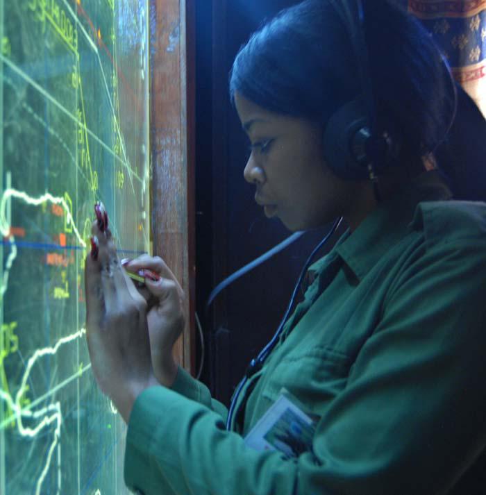 A pocos pasos la teniente Liz Yamara Ravelo, a sus 23 años, ya es jefa de un punto de mantenimiento técnico.