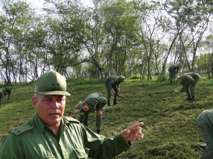 El mayor Rafael Leyva, primer oficial de la Sección de Ingeniería, de la Región Militar de Cienfuegos, explica que pese a sembrarse en la Escuela desde hace años con arreglo a un plan quinquenal, es en 2013 cuando tiene lugar el grueso de las plantaciones, en cumplimiento de la Orden 3 del Ministro, emitida un año antes.