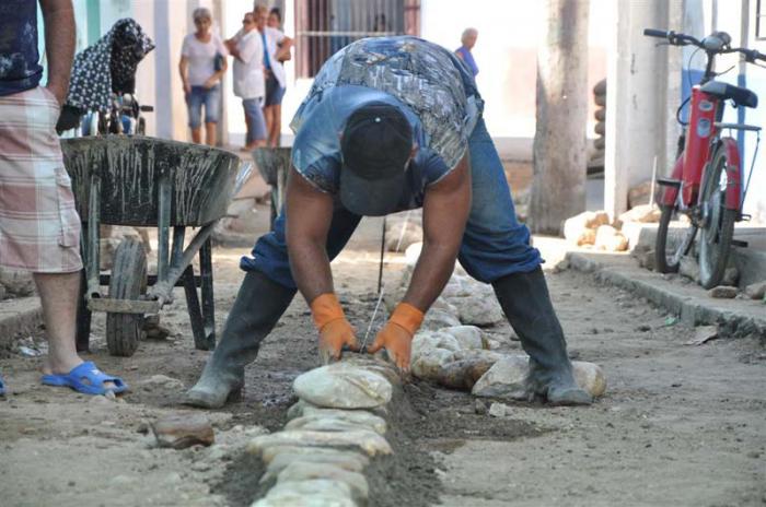 Porque una mano lava la otra y las dos lavan la cara, fuerzas de las empresas Porcina, Avícola, Forestal, Cárnica, de Materias Primas y del Combinado Río Zaza, entre otras, vienen igualmente apoyando los trabajos de Servicios Comunales, en particular el empedrado de calles y otras labores de remozamiento, incluida la reparación de aceras y contenes, un frente que se extiende por varios sectores del centro histórico.