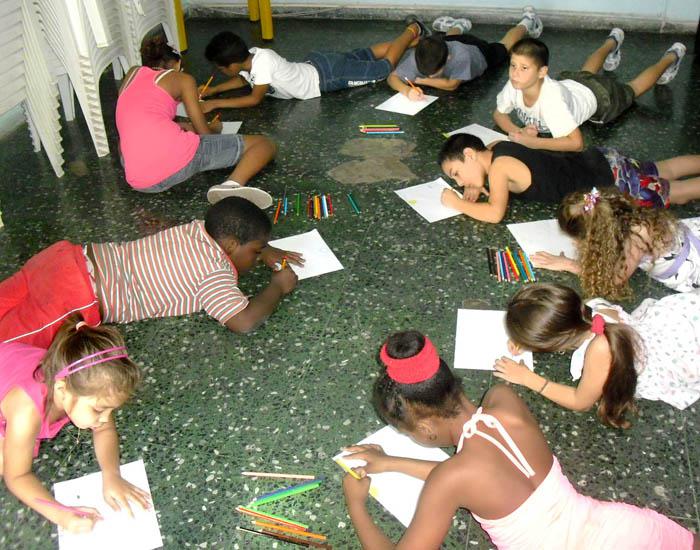 En la Casa del niño y la niña, esa que queda en la calle Vapor, no se escatima el tiempo de dedicación a los más chicos. Abierta de lunes a lunes. Allí asisten jóvenes como el instructor de arte Omar González, que ofrece cada uno de sus sábados al taller de artes plásticas que imparte, aunque el resto de la semana trabaje con estudiantes de una secundaria básica.