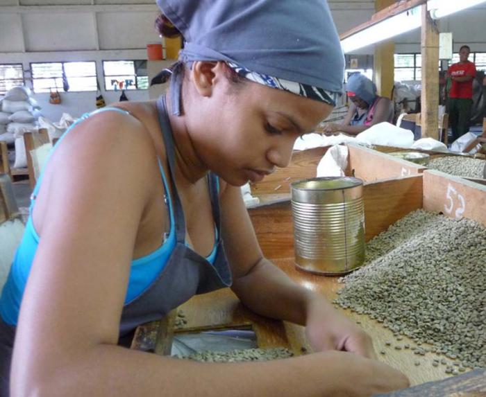 GUANTÁNAMO.— Menuda, alegre, de escaso hablar, pero virtuosa en su labor, se nos presenta Dariannis Domínguez Torres, la joven que con apenas 22 años califica como la más diestra trilladora manual de café en la Planta Asdrúbal López, colectivo con el nombre comercial de Alto Serra sobre el cual recae gran parte de la responsabilidad en el beneficio del grano.