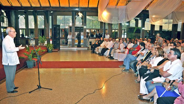 Las palabras finales del encuentro estuvieron a cargo de Eusebio Leal, que no por breves, dejaron de emocionar al auditorio, por el preciso y sintetizado recorrido a través del sacrificado y combativo acontecer de batallas y próceres por la libertad, desde los días gloriosos de Céspedes, Gómez, Maceo y Martí que abrieron el camino, pasando por las frustraciones de las décadas del 20 y del 30, por las esperanzadoras jornadas del Moncada y el Granma, por las gloriosas páginas protagonizadas por el estudiantado universitario… hasta nuestros días, en que este país, dijo, tiene el derecho a encontrar su propio camino, porque nuestro es el problema y nuestra es la solución.